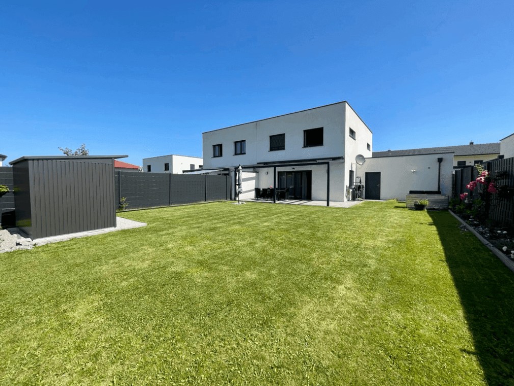 Diese hochwertige Doppelhaushälfte in Ziegelmassivbauweise befindet sich in einem ruhigen Neubaugebiet mit traumhaftem Blick auf die umliegenden Berge - perfekt für Familien, die sowohl Aktivität als auch Entspannung suchen.