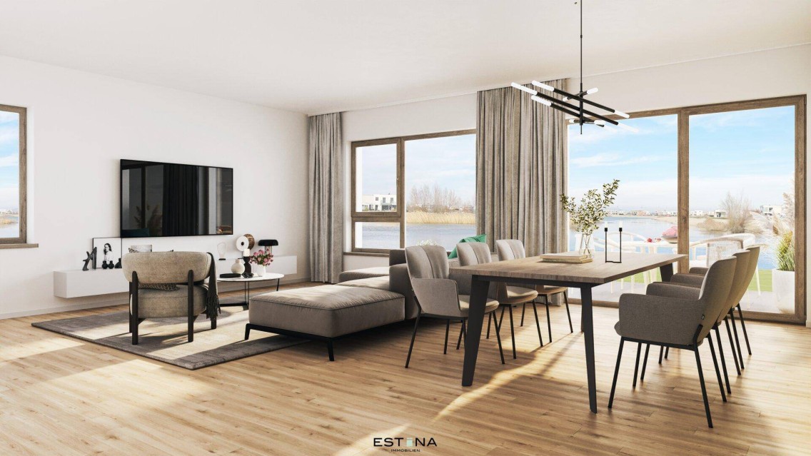 Unsere vier Reihenhäuser vereinen stilvolle Architektur mit funktionalem Wohnen. Offene Wohnkonzepte, hochwertige Materialien und große Fensterfronten lassen Licht und Natur ins Haus. Die perfekte Wahl für alle, die modernes Wohnen mit direktem Wasserzugang suchen.Wohnungen – Komfort mit Seezugang