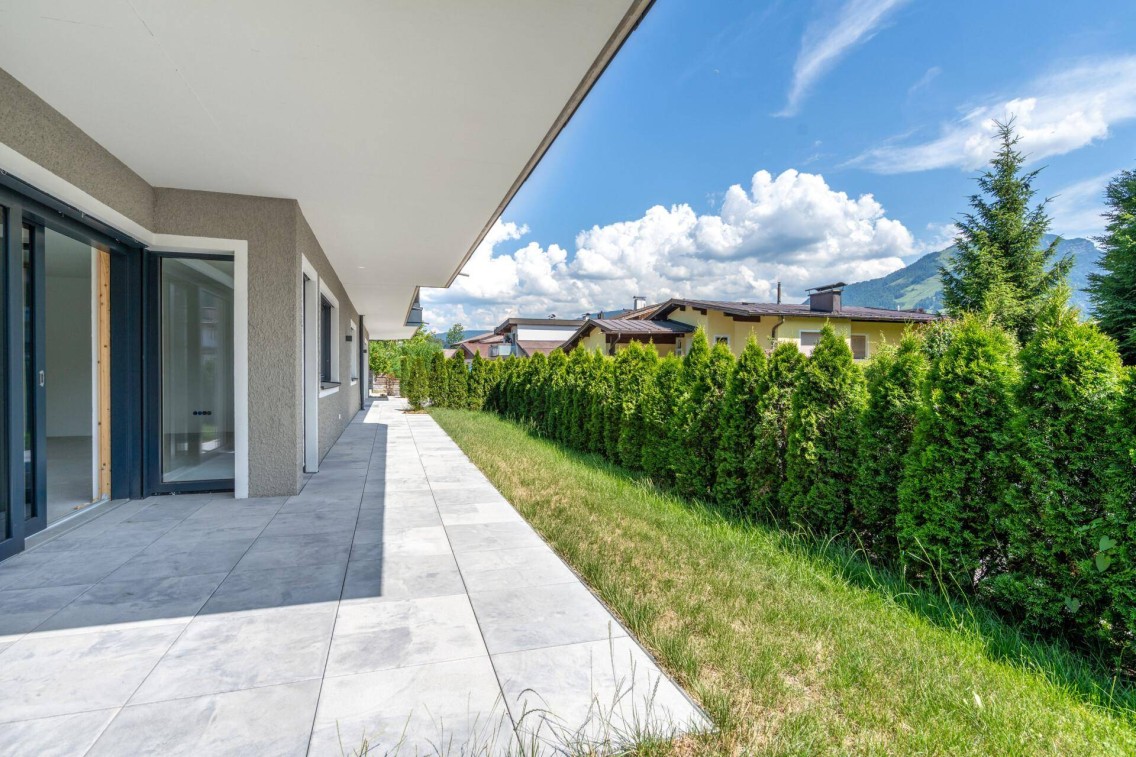 In sonniger und ruhiger Lage von Kössen befindet sich diese exklusive Neubau-Gartenwohnung mit ca. 103 m² Wohnfläche, die modernes Wohngefühl mit hochwertiger Ausstattung vereint. Die durchdachte Raumaufteilung bietet zwei großzügige Schlafzimmer – jeweils mit eigenem Bad en Suite – und schafft somit ideale Voraussetzungen für Paare, Familien oder Gäste.