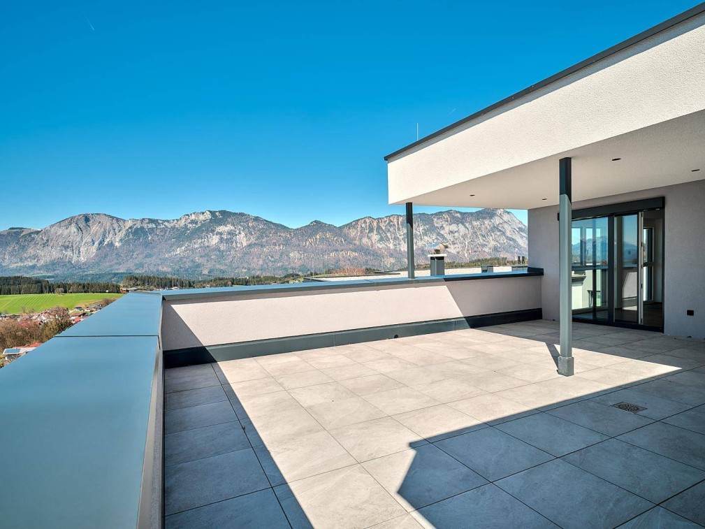 Terrasse welche schnell zum neuen Lieblingsplatz wird – mit Sonne bis in die Abendstunden, frischer Bergluft und spektakulärem Alpenpanorama. Edle Materialien, wie Eichenlandhausdielen, unterstreichen den modernen Wohnstil. Fenster mit integrierten Rollos sorgen für zusätzlichen Komfort. Die finalen Akzente, etwa bei Innentüren und Badezimmerausstattung ,bleiben Ihnen zur individuellen Gestaltung überlassen.