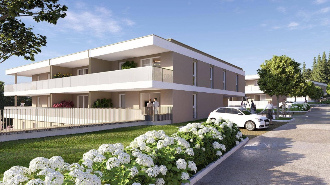 Insgesamt umfasst der Wohnpark drei liebevoll geplante Wohnhäuser (Haus A, B und C) mit je 14 barrierefreien und hochwertig ausgestatteten Wohnungen. Die Top 12 überzeugt mit einer großzügigen Wohnfläche von rund 103 m² und einem riesigen Balkon mit fast 59 m² – ideal für gemütliche Familienfrühstücke, entspannte Abende oder Spielen an der frischen Luft.