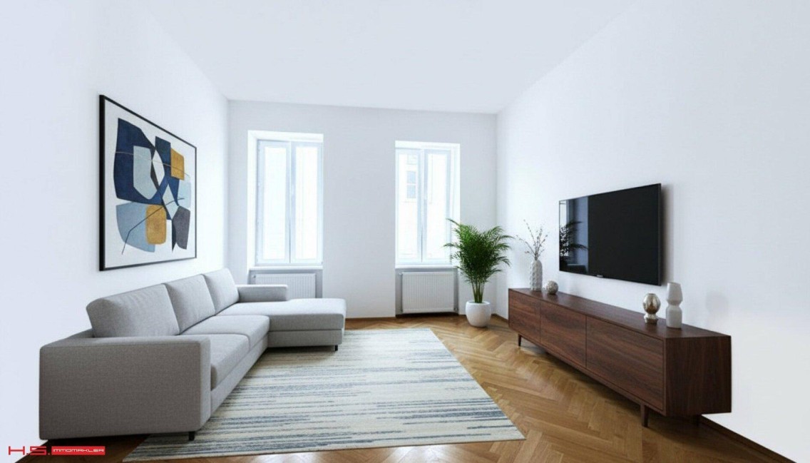 ————————————————————————- DIE RAUMAUFTEILUNG:- 1 Vorzimmerca. 9m²- 1 Flur ca. 3,30m²- 1 Bad mit WC ca 6m² - 1 WC ca 1,50m²- 1 Wohnküche ca 24m2 - 1 Zimmer ca 18m²- 1 Schlafzimmer ca 19m²- 1 Schlafzimmer ca 20m² (teilbar für 2 Kinderzimmer)- 1 Einlagerungsraum ca 9m² im Keller (mit Lift erreichbar)- DIE LAGE - VERKEHRSANBINDUNG:- DieWohnung liegt in einer ruhigen, teilweise begrünte Straße, welche an den 4. Bezirk grenzt.- Die Verkehrsanbindung ist als perfekt zu bezeichnen. - Die U1 und die S - Bahn füßläufig erreichbar.• Die Anbindung an die U4 per Autobus und die Straßenbahn fährt direkt bis zum Karlsplatz.- GRUNDBUCH:Die Wohnung ist parifiziert und im Grundbuch ist Wohnungseigentum begründet.- FAZIT:Eine Immobilie mitten in der Stadt in einem geschichtsträchtigen Haus in bester Ruhelage mit einem ausgezeichneten Grundriss.Optimal für eine Familie mit 1-2 Kindern.Eine sichere Wertanlage!- GESCHÄFTSBEDINGUNGEN: