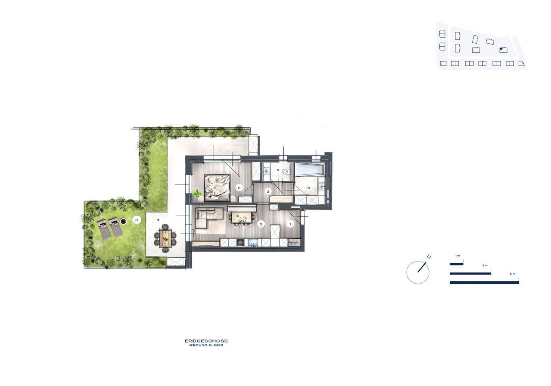Willkommen in einem Wohntraum, der innen wie außen überzeugt: 52m² Wohnfläche verbunden mit einer Terrasse und einem Garten mit 37m² Grünraum zur exklusiven Nutzung. Hier verschmelzen hochwertiges Wohnen und Naturerlebnis zu einem Lebensgefühl der Extraklasse.