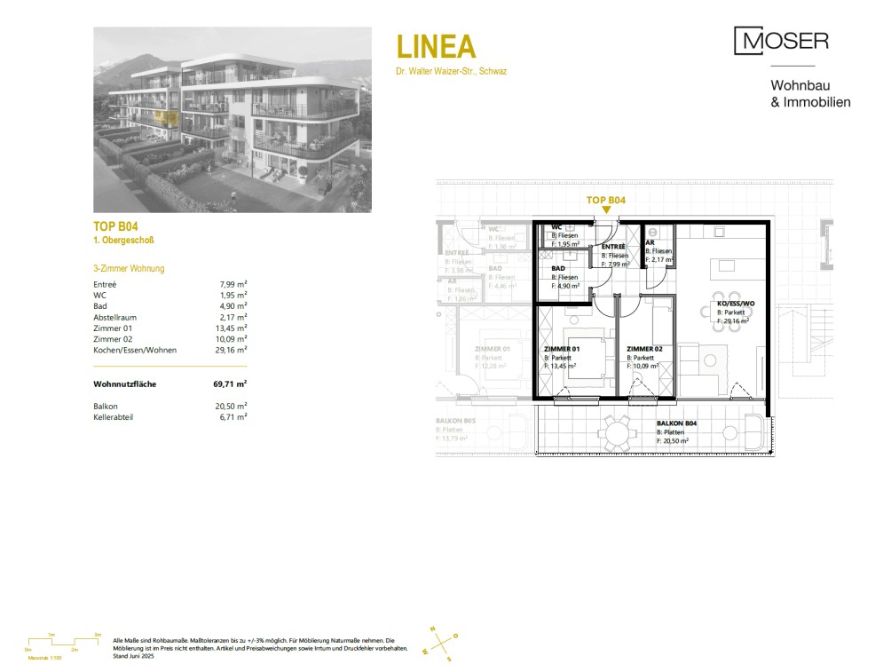 LINEA in Schwaz - Top B04 - 3-Zimmer-Neubauwohnung mit 20 m² Balkon