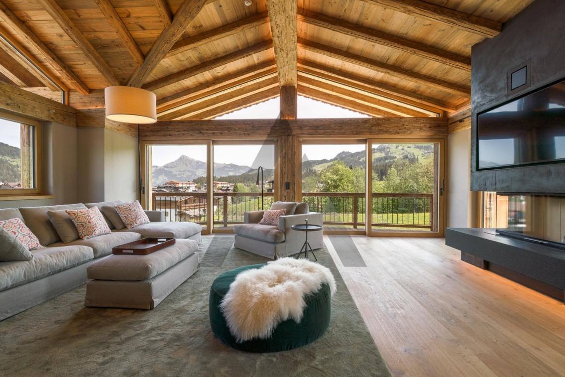 Im traditionellen Tiroler Landhausstil jedoch mit modernster und hochwertigster Ausstattung entstand diese Chalet-Einheit in einem traumhaften Ensemble mit sechs Einheiten in ruhiger und leicht erhöhter Ausblicklage von Kirchberg in Tirol. Diese Einheit bietet einen besonders schönen Blick auf Kirchberg und das Kitzbüheler Horn.