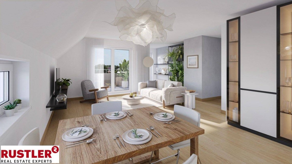 Das Projekt besticht durch eine ästhetisch anspruchsvolle, moderne Architektur, die sich harmonisch in die Umgebung einfügt. Hochwertige Materialien, Eichenparkett, großformatige Feinsteinfliesen, sowie Markenarmaturen in Bad und Küche garantieren ein exklusives Wohngefühl. Großzügige Fensterflächen schaffen helle, freundliche Räume und sorgen für ein angenehmes Wohnklima. Jede Einheit verfügt über mindestens eine Freifläche – ob Balkon, Terrasse, Loggia oder Garten – mit hochwertigen Betonplattenbelägen, punktueller Ambientebeleuchtung und frostsicherer Wasserentnahmestelle. Auch funktionale Aspekte wurden nicht vergessen: Fußbodenheizung, elektrische Handtuchheizkörper im Bad, dreifach verglaste Holz-Alu-Fenster mit elektrischem Sonnenschutz sowie vorbereitete Anschlüsse für TV, Internet, Telefon und Alarmanlagen (in EG-Wohnungen) sind Standard.