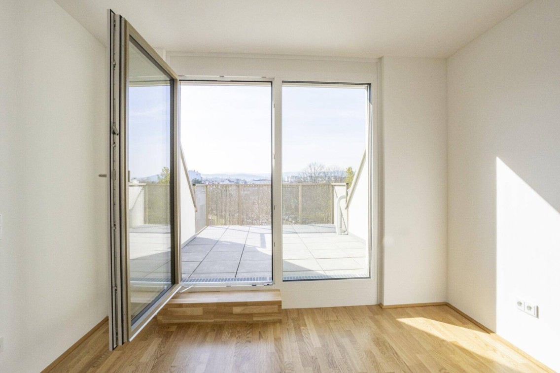 Intelligente Haustechnik, wie beispielsweise eine Fußbodenheizung und Außenbeschattungen, gewährleisten eine angenehme Raumtemperatur im gesamten Wohnbereich. Abstellräume und Korridore sind mit hochwertigem Parkett oder Fliesen ausgestattet, ebenso wie die Badezimmer und Toiletten, die mit qualitative hochwertigen Armaturen und Sanitäranlagen ausgestattet sind. In den Wohn‐ und Schlafzimmern wurde matt versiegeltes Eichenparkett verlegt. Auf den Terrassen, Loggien und Balkonen finden sich Estrichplatten in betongrauer Ausführung. Der Zugang zur Tiefgarage erfolgt über das Nachbarhaus, und das automatische Garagentor kann bequem mit einem Funksender geöffnet und geschlossen werden.Ein Tiefgaragenabstellplatz ist inkludiert.Ein zusätzlicher Garagenabstellplatz kann optional erworben werden zum Preis von € 26.302,15 oder alternativ angemietet werden für € 110,25 pro Monat.Weitere Informationen finden Sie in der Bau‐ und Ausstattungsbeschreibung.Dieses Objekt ist Freifinanziert.alle Wohnungen finden Sie unter www.wng.at LEISTBARES WOHNEN MIT HOHER QUALITÄT. seit 1931
