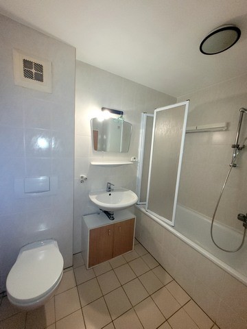 Neben einem praktischen Vorraum verfügt die Wohnung über ein Bad/WC mit Badewanne sowie eine voll ausgestattete Einbauküche, die im Kaufpreis enthalten ist.