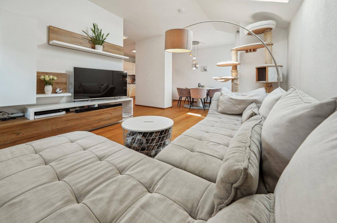 Diese lichtdurchflutete Wohnung im Dachgeschoss eines 2020 neu erbauten Wohnhauses, bietet 80,85m² Wohnfläche, die sich in zwei Schlafzimmer, eine moderne Küche und ein stilvoll eingerichtetes Bad aufteilt. Ein extra angeordnetes WC sowie ein Abstellraum sorgen für zusätzlichen Komfort. Eine umweltfreundliche Pelletheizung kombiniert mit einer modernen Fußbodenheizung schaffen ein angenehmes Wohnraumklima. Der sonnige Balkon mit ca. 5,51 m² lädt zum Verweilen und Entspannen ein und gibt Ihnen die Möglichkeit Ihren Wohnbereich im Außenbereich zu Erweitern. Ein Außenstellplatz und ein Kellerabteil mit 6,59m² sind der Wohnung zugehörig. Hochwertige Materialien, moderne Ausstattung, die niedrigen monatlichen Nebenkosten sowie eine traumhafte Aussicht und die ruhige Lage in Seenähe schaffen ein behagliches Zuhause zum Wohlfühlen.