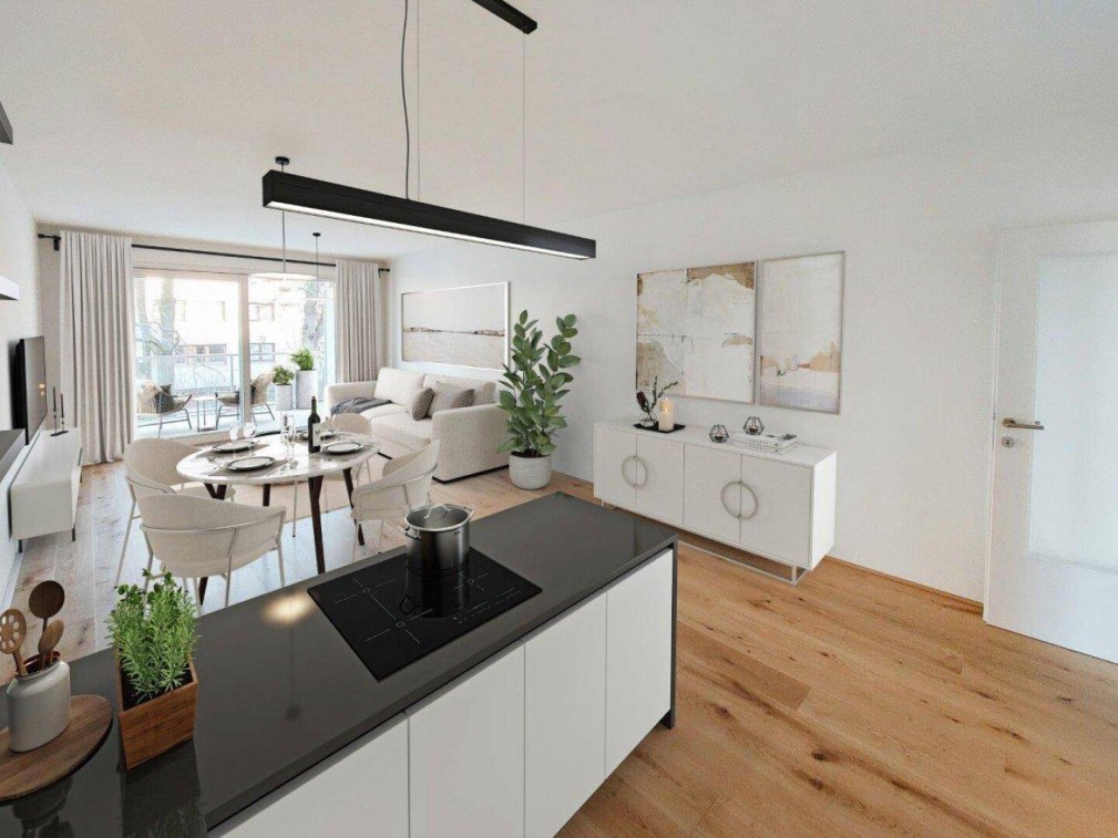 Diese 3-Zimmer-Eigentumswohnung bietet auf rund 93 m² Wohnfläche (zuzüglich rund 27 m² Terrasse) ausreichend Platz für Ihren Wohntraum. Die Wohnung befindet sich im 1. Liftstock eines modernen Neubaus (Erstbezug). Sie überzeugt durch moderne Architektur, hochwertige Ausstattung und einen durchdachten Grundriss.Die Eigentumswohnung unterteilt sich in eine gemütliche Wohnküche, zwei großzügige Schlafzimmer, zwei Bäder, eine separate Toilette mit Handwaschbecken, sowie zwei einladende Terrassen.Die ca. 31 m² große Wohnküche ist östlich ausgerichtet, von hier aus ist auch der gemütliche Balkon erreichbar.Eines der beiden Schlafzimmer (ca. 18 m²), verfügt nicht nur über ein Bad mit Walk-in Dusche, Doppelwaschbecken und Toilette, sondern auch einen Zugang auf die Loggia (die auch über den Vorraum begehbar ist).Das zweite Schlafzimmer hat eine Größe von ca. 15 m², angrenzend befindet sich das zweite Badezimmer mit Badewanne, Doppelwaschbecken und Waschmaschinenanschluss.Außerdem steht eine separate Gäste-Toilette mit Handwaschbecken zur Verfügung.Für extra Stauraum sorgt der ca. 4,3 m² große Einlagerungsraum (im Erdgeschoss), der im Angebot inkludiert ist. Garagenplätze können bei Bedarf separat erworben werden.Ausstattung:Heiz- und Kühlsystem mit WärmepumpeEinzeln regulierbare Fußbodenheizung in allen Zimmern inkl. BadezimmerDeckenkühlung Echtholzparkett Terrassenverfliesung mit NatursteinNurglas-Geländer mit Sicherheitsglas und Außenwasseranschluss auf der TerrasseEinbruchshemmende Wohnungseingangstür der Klasse WK3Holz-Alu-Fenster und Terrassentüren mit 3-fach Isolierverglasung Elektrische Raffstores mit FunkfernbedienungSanitärausstattung & Armaturen von der Marke Villeroy & Boch und HansgroheGroßzügiger Duschbereich mit bodenebener Dusche Photovoltaik-Anlage am Dach zur teilweisen Energiegewinnung für AllgemeinbereicheLiftKellerabteilWir weisen darauf hin, dass zwischen dem Vermittler und dem zu vermittelnden Dritten ein familiäres oder wirtschaftliches Naheverhältnis besteht.