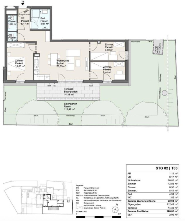 Stg. 2 Top 03 | 4 Zimmer | ca. 73m² + ca. 127m² FreiflächeDie ca. 73 m² große Wohnung bietet eine großzügige Wohnküche, 3 weitere Zimmer, eine ca. 14m² große Terrasse sowie einen ca. 112m² großen Eigengarten. Die Räume sind hell, mit großflächigen Fensterflächen ausgestattet und vielseitig nutzbar.Raumaufteilung: Vorraum: ca. 8,17 m² Wohnküche: ca. 26,85 m² Zimmer: ca. 13,05 m² Zimmer: ca. 8,50 m² Zimmer: ca. 8,44 m² Abstellraum: ca. 1,14 m² WC: ca. 1,85 m² Bad: ca. 4,91 m² Terrasse: ca. 14,38 m² Garten: ca. 112,42 m²Ein Kellerabteil mit ca. 2,95 m² ist der Wohnung zugeordnet.Besonders hervorzuheben: Der Bau hat bereits begonnen – das ermöglicht Ihnen als Käufer, gemeinsam mit dem Architekten individuelle Anpassungen in der Raumgestaltung vorzunehmen und Ihre persönlichen Wohnideen zu verwirklichen (solange es noch möglich ist).Die Architektur ist klar und zeitgemäß, das Wohnkonzept auf langfristige Qualität ausgerichtet: Alle Wohnungen sind barrierefrei zugänglich. Beheizt wird mittels Luft/Wasser-Wärmepumpe , ergänzt durch eine Photovoltaikanlage zur Unterstützung des Allgemeinstroms. Eine Tiefgarage mit gesamt 19 Stellplätzen , steht Ihnen zur Verfügung.Technische Ausstattung & Komfort: Wärmepumpe Photovoltaik/Solaranlage zur Reduktion von Energie- und Betriebskosten Fußbodenheizung mit Raumthermostaten Fußbodentemperierung in sämtlichen Zimmern Hochwertige Innenausstattung (Eichenparkett, Feinsteinfliesen u.v.m.) 3‑fach verglaste Kunststoff‑Alu‑Fenster und Sonnenschutz in allen Wohnungen (Rollladen, Raffstores, Markisoletten) Kleinkinderspielplatz auf EigengrundKaufpreis:Der Verkaufspreis beläuft sich auf Euro 545.000.-Diese Wohnung kann auch als Vorsorge- / Anlagewohnung mit Umsatzsteuerausweisung (weitere Vermietung verpflichtend!) erworben werden:Anlegerpreis: Euro 490.990,99.- (zzgl. 20% Ust).Alle Preise verstehen sich ohne Kücheneinrichtung und Tiefgaragenstellplatz ( á € 32.256.- bzw. 29.059,46.- Netto + USt) , in schlüsselfertiger Ausführung!Was überzeugt? Ein klar strukturiertes Konzept, intelligente Grundrisse und eine Lage mit Lebensqualität. Egal ob zur Kapitalanlage oder für den Eigenbedarf – Mit diesem Wohnbauprojekt investieren Sie in Lebensqualität und Substanz! Immobilien gelten als wertbeständige und sichere Anlageform. Alle Wohnungen und Stellplätze können auch als Vorsorge- / Anlagewohnung mit Umsatzsteuerausweisung (weitere Vermietung verpflichtend!) erworben werden! Sichern Sie sich Ihre neue Vorsorgewohnung - gerne beraten wir Sie dazu!Infina, Österreichs beliebtester Wohnbau-Finanz-Experte, begleitet Sie ganzheitlich rund um Ihr Immobilienvorhaben.Unser Team von Immobilienexperten unterstützt Sie beim geplanten Kauf als auch bei einem möglichen Verkauf Ihrer bestehenden Immobilie. Zudem bieten unsere Finanzierungsexperten auf Wunsch maßgeschneiderte Finanzierungslösungen durch den Vergleich der besten Kredite von über 120 Banken in Österreich und Deutschland.Wir möchten Sie unabhängig, transparent und flexibel als starker Partner in allen Immobilienangelegenheiten unterstützen.Kontaktieren Sie uns für einen persönlichen Besichtigungstermin oder eine unverbindliche und kostenfreie Finanzierungsberatung.Was kann Infina noch für Sie tun?Wenn Sie eine Finanzierung für Ihre Traumimmobilie wünschen, begleiten wir Sie gerne von der strategischen Planung bis zur Realisierung und darüber hinaus. Wir sind Österreichs beliebtester Wohnbau-Finanz-Experte und unsere Mission lautet: Jeder Kunde hat das Recht auf den besten Kredit.Infina kooperiert mit über 120 Banken in Österreich und DeutschlandÜber 600 Kreditprodukte im VergleichÜber 100-mal vor Ort in ganz ÖsterreichEbenso unterstützen wir unsere Kunden beim Verkauf und der Vermietung Ihrer Immobilien sowie bei der Immobiliensuche durch unsere Immobilienexperten.