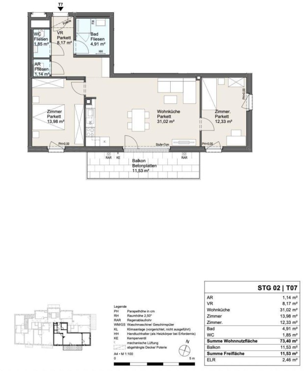 Stg. 2 Top 07 | 3 Zimmer | ca. 74 m² + ca. 12 m² BalkonDie ca. 74 m² große Wohnung befindet sich im 1. Liftstock und verfügt über eine großzügige Wohnküche mit direktem Zugang zum ca. 12 m² großen Balkon. Zusätzlich stehen zwei weitere Zimmer zur Verfügung. Alle Räume sind hell, mit großflächigen Fensterflächen ausgestattet und vielseitig nutzbar.Raumaufteilung: Vorraum: ca. 8,17 m² Wohnküche: ca. 31,02 m² Zimmer: ca. 13,98 m² Zimmer: ca. 12,33m² Bad: ca. 4,91 m² WC: ca. 1,85 m² Abstellraum: ca. 1,14 m² Balkon: ca. 11,53 m²Ein Kellerabteil mit ca. 2,46 m² ist der Wohnung zugeordnet.Besonders hervorzuheben: Der Bau hat bereits begonnen – das ermöglicht Ihnen als Käufer, gemeinsam mit dem Architekten individuelle Anpassungen in der Raumgestaltung vorzunehmen und Ihre persönlichen Wohnideen zu verwirklichen (solange es noch möglich ist).Die Architektur ist klar und zeitgemäß, das Wohnkonzept auf langfristige Qualität ausgerichtet: Alle Wohnungen sind barrierefrei zugänglich. Beheizt wird mittels Luft/Wasser-Wärmepumpe , ergänzt durch eine Photovoltaikanlage zur Unterstützung des Allgemeinstroms. Eine Tiefgarage mit gesamt 19 Stellplätzen , steht Ihnen zur Verfügung.Technische Ausstattung & Komfort: Wärmepumpe Photovoltaik/Solaranlage zur Reduktion von Energie- und Betriebskosten Fußbodenheizung mit Raumthermostaten Fußbodentemperierung in sämtlichen Zimmern Hochwertige Innenausstattung (Eichenparkett, Feinsteinfliesen u.v.m.) 3‑fach verglaste Kunststoff‑Alu‑Fenster und Sonnenschutz in allen Wohnungen (Rollladen, Raffstores, Markisoletten) Kleinkinderspielplatz auf EigengrundKaufpreis:Der Verkaufspreis beläuft sich auf Euro 499.000.-Diese Wohnung kann auch als Vorsorge- / Anlagewohnung mit Umsatzsteuerausweisung (weitere Vermietung verpflichtend!) erworben werden:Anlegerpreis: Euro 449.549,55.- (zzgl. 20% Ust).Alle Preise verstehen sich ohne Kücheneinrichtung und Tiefgaragenstellplatz ( á € 32.256.- bzw. 29.059,46.- Netto + USt) , in schlüsselfertiger Ausführung!Was überzeugt? Ein klar strukturiertes Konzept, intelligente Grundrisse und eine Lage mit Lebensqualität. Egal ob zur Kapitalanlage oder für den Eigenbedarf – Mit diesem Wohnbauprojekt investieren Sie in Lebensqualität und Substanz! Immobilien gelten als wertbeständige und sichere Anlageform. Alle Wohnungen und Stellplätze können auch als Vorsorge- / Anlagewohnung mit Umsatzsteuerausweisung (weitere Vermietung verpflichtend!) erworben werden! Sichern Sie sich Ihre neue Vorsorgewohnung - gerne beraten wir Sie dazu!Infina, Österreichs beliebtester Wohnbau-Finanz-Experte, begleitet Sie ganzheitlich rund um Ihr Immobilienvorhaben.Unser Team von Immobilienexperten unterstützt Sie beim geplanten Kauf als auch bei einem möglichen Verkauf Ihrer bestehenden Immobilie. Zudem bieten unsere Finanzierungsexperten auf Wunsch maßgeschneiderte Finanzierungslösungen durch den Vergleich der besten Kredite von über 120 Banken in Österreich und Deutschland.Wir möchten Sie unabhängig, transparent und flexibel als starker Partner in allen Immobilienangelegenheiten unterstützen.Kontaktieren Sie uns für einen persönlichen Besichtigungstermin oder eine unverbindliche und kostenfreie Finanzierungsberatung.Was kann Infina noch für Sie tun?Wenn Sie eine Finanzierung für Ihre Traumimmobilie wünschen, begleiten wir Sie gerne von der strategischen Planung bis zur Realisierung und darüber hinaus. Wir sind Österreichs beliebtester Wohnbau-Finanz-Experte und unsere Mission lautet: Jeder Kunde hat das Recht auf den besten Kredit.Infina kooperiert mit über 120 Banken in Österreich und DeutschlandÜber 600 Kreditprodukte im VergleichÜber 100-mal vor Ort in ganz ÖsterreichEbenso unterstützen wir unsere Kunden beim Verkauf und der Vermietung Ihrer Immobilien sowie bei der Immobiliensuche durch unsere Immobilienexperten.