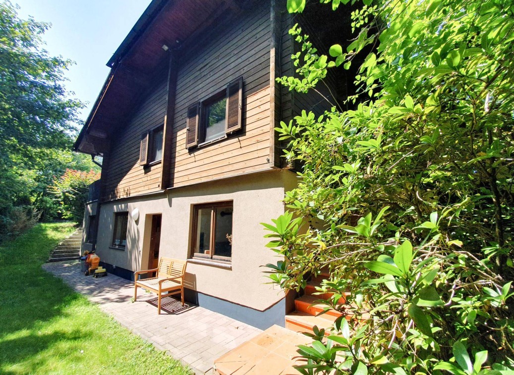 Im Erdgeschoß auf ca. 130 m² befinden sich 4 Zimmer, Küche mit XL-Terrasse und Garten. Im Untergeschoß, durch die Hanglage gut belichtet, liegt eine 3-Zimmer-Einliegerwohnung (bewilligter Wohnraum) mit ca. 54 m² mit eigenem Hauszugang und Gartenteil.