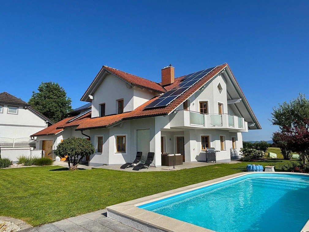 Top gepflegtes und modern ausgestattetes Wohnhaus auch für 2 Familien geeignet - Lage zwischen Kirchschlag und Glasau bei Linz.Von der Morgenterrasse besticht der Blick auf den Pool, umgeben von vielen bunten Blumen und Sträuchern – lassen Sie die gemütliche Atmosphäre auf sich wirken.Besonderheiten:Großzügige Raumaufteilung modern interpretiertHochwertige Fenster mit Rollläden (elektrisch mit Zentralfunktionen) und Insektenschutz Einbauküche komplettSichtkaminofen - im Esszimmer und Wohnzimmer2 großzügige Badezimmer teilw. mit barrierefreier RegenduscheDachflächenfenster Obergeschoss Bad und WC elektrischBalkon mit Glasgeländer im ObergeschoßGroßer DachbodenBeheizt wird mit Luftwärmepumpe sowie GasbrennwertgerätTeilweise Fußbodenheizung und RadiatorenPV-Anlage (mit Lastmanagement)Smart Home mit EIB Bussystem (Zentralfunktionen z.B.: ALLES AUS und Szenen)Sat-Anlage + EDV - VerkabelungZentrale StaubsaugeranlageVolle Unterkellerung mit viel Staufläche• mit Sauna, Infrarotkabine sowie im Nebenraum eine DuscheWeinkellerDoppelgarage ca. 42 m² mit darüberliegendem LagerraumPool (auch beheizbar mit Überschuss Energie) mit SalzwasserBiotop (1000l)Außenschutz mit Bewegungsmelder und 3 KamerasBlitzschutzanlageFußläufig erreichbar sind:Nah & Frisch, Metzgerei, Bäckerei, Maurerwirt, Bank,Arzt, Kindergarten, Post etc.Bus Linie 260 fährt in ca. 20 Min. nach Linz!Umgeben von weitläufigen Wiesen und Wäldern und doch nurca. 20 Min. ins Linzer Stadtzentrum genießen Sie die Ruhe, ohne auf dieAnnehmlichkeiten des täglichen Bedarfs verzichten zu müssen.Absolut ruhige Siedlungslage unweit vom Ortskern Kirchschlag/Linz.Ländliches Umfeld und trotzdem gute Infrastruktur gegeben.
