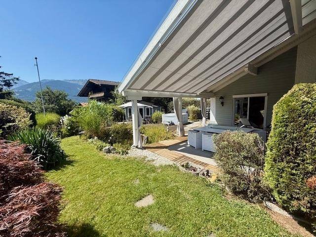 Ankommen, durchatmen, an nichts denken müssen: Hinter der diskreten Zufahrt öffnen sich Garage und Doppelcarport – und schon beim Aussteigen spüren Sie die Ruhe dieses Ortes. Der Blick schweift über das eigene Grün, weiter über weite Wiesen bis hinauf zu den Gipfeln. Südwestlage, Licht bis in den Abend, Sonnenuntergänge wie gemalt.