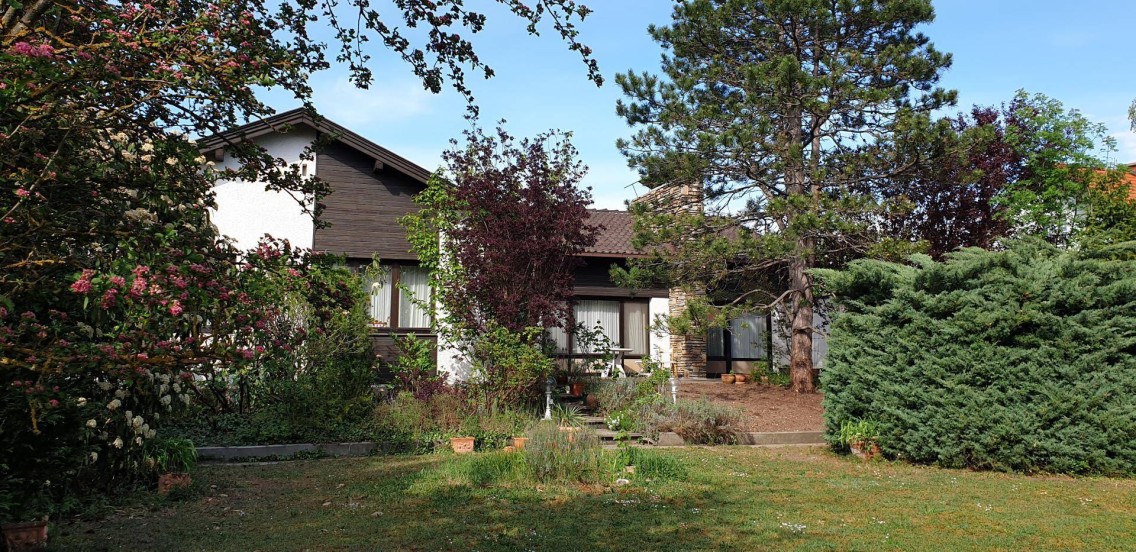 Zum Verkauf gelangt ein 1973 errichteter, grösstenteils unterkellerter Bungalow mit 176m2 Wohnfläche auf einem 1000 m2 ebenen Grundstück. mit südseitiger Terrasse, Aluminiumfenstern, massiver Ziegelbauweise .(gut durchlüftet), Gaszentralheizung sowie wahlweiser Ölzentralheizung. In den Vorräumen befindet sich ein Marmorboden, weiters befinden sich im Wohnzimmer ein offener Kamin sowie daneben ein Kachelofen.. Die grosse Küche ist mit Top Geräten (4 Induktionskochfeldern, Gaskochfeld, Dampfgarer) ausgestattet. In den grosszügig aufgeteilten Räumen befinden sich vom Tischler gefertigte, hochwertige, helle Vollholzmöbeln im Landhausstil sowie rustikale, bemalte Bauernschränke. Der Bungalow ist fast zur Gänze unterkellert plus einem Gartenkeller mit separatem Eingang, der auch als Luftschutzkeller genutzt werden kann. Es sind zwei Autoabstellplätze mit einem durch Fernbedienung gesteuerten Schiebetor vorhanden. Im Keller wurde eine Sauna geplant. Im 50 Jahre alten, gepflegten Ziergarten befindet sich auch ein Biotop.