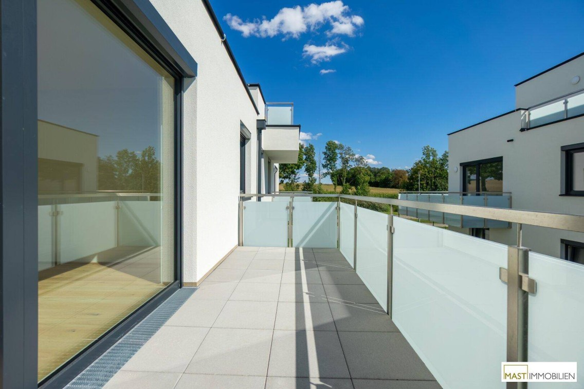 Fragen Sie gerne nach unserem Immobilienfolder an, sämtliche Wohnungen auf www.mast-immo.atInmitten der grünen Weite des Weinviertels und doch in unmittelbarer Nähe zur Stadt Korneuburg entsteht ein Wohnbauprojekt, das modernes Wohnen mit ländlicher Ruhe auf ideale Weise verbindet. In Spillern, nur wenige Fahrminuten von Wien entfernt, realisieren wir 38 hochwertige Eigentumswohnungen – perfekt für Familien, Paare und Singles, die ein Zuhause mit Lebensqualität suchen.Wohnen im Grünen – mit allem, was das Herz begehrtDie Wohnungen sind zwischen ca. 43 m² und 90 m² groß und bieten durchdachte Grundrisse, helle Räume sowie großzügige Freiflächen wie Balkone, Terrassen oder Eigengärten. Die Ausstattung ist modern, hochwertig und auf ein langfristig angenehmes Wohngefühl ausgelegt.Highlights des Projekts:38 Wohneinheiten mit 2 bis 4 Zimmern (aufgeteilt auf 2 Trakte)Großzügige Balkone, Terrassen oder GärtenRuhige, grüne Lage nahe dem Naherholungsgebiet DonauauenFußläufige Anbindung an Bahn und NahversorgungHochwertige Ausstattung & nachhaltige BauweisePKW-Stellplätze optional erhältlich (zu je 15.000,-- €)Geplante Fertigstellung: 01.10.2025PhotovoltaikanlageRaumaufteilung: