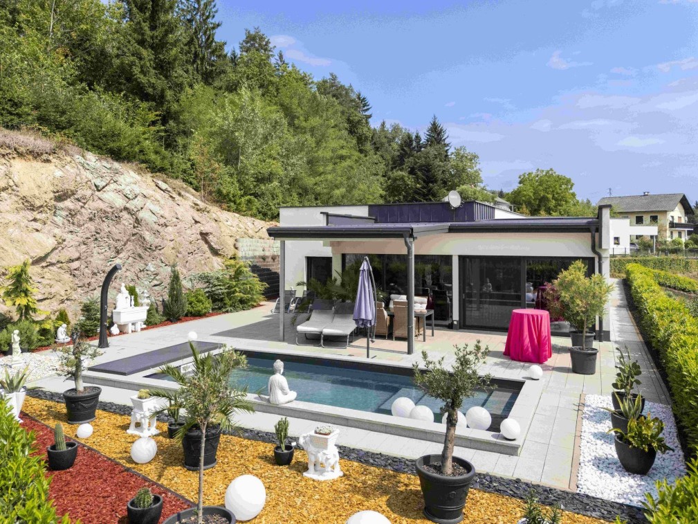 Design trifft Weitblick: Moderner Bungalow mit Pool in Stadtrandlage
