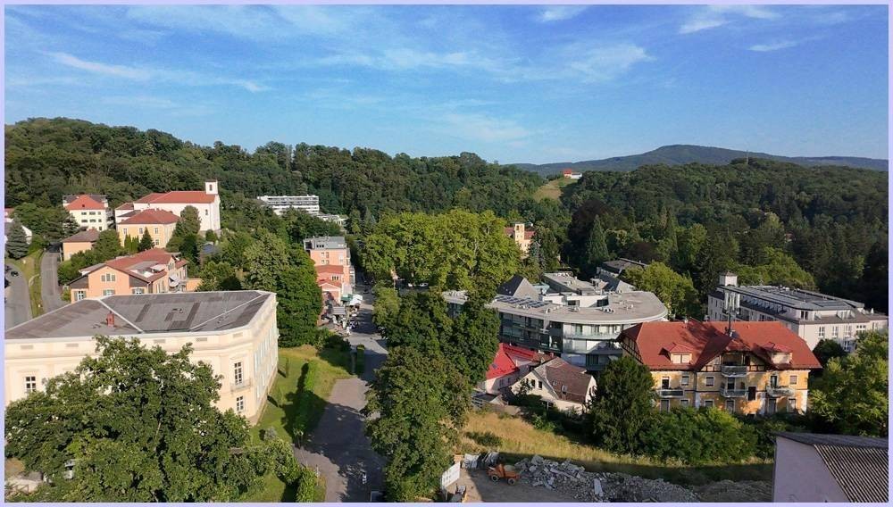 Diese Penthouse Wohnung ist mit 4 Terrassen und einer überdachten Terrasse im Neubau ausgestattet, von welchen man in den idyllischen Kurort Richtung Hauptplatz oder zu den Gleichenberger Kogeln blickt.