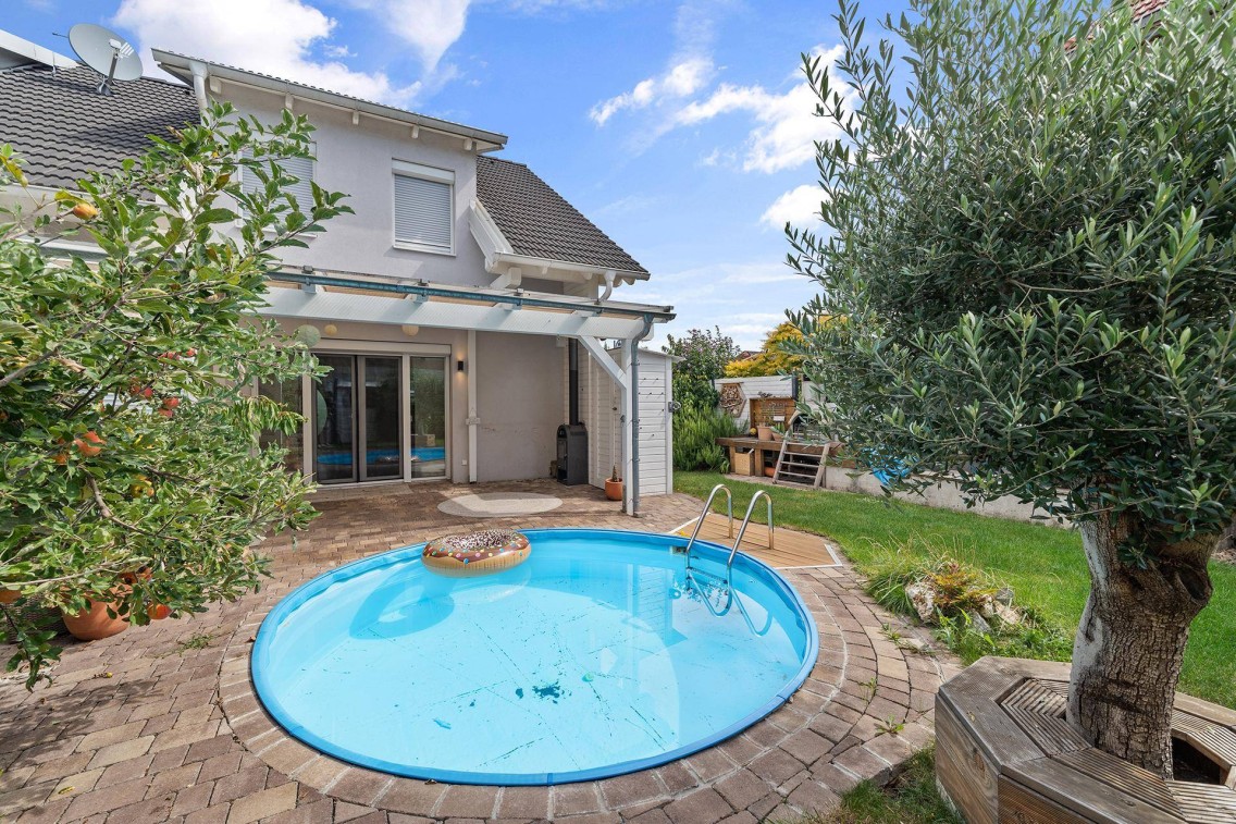 Auf einem ca. 240m² großen Grundstück vereint dieses Haus angenehme Wohnatmosphäre, gut durchdachte Grundrisse und private Rückzugsbereiche im Freien – inklusive Sauna, Pool und überdachter Terrasse.