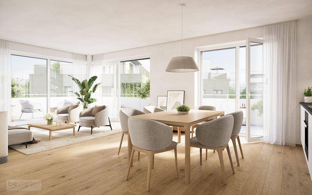 Mehrere Kinderspielplätze und Freibereichszonen sind im Baukonzept berücksichtigt und sorgen für eine gute Aufenthaltsqualität. Die 1-5-Zimmer-Wohneinheiten verfügen außerdem über vielfältige Freibereiche in Form von Gärten, Balkonen und Terrassen.