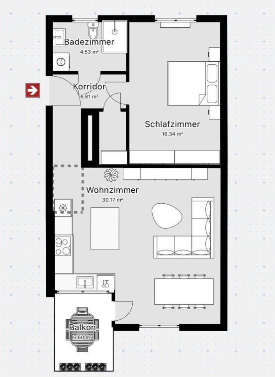 Ca. 59m²Wohnfläche mit durchdachtem Grundriss