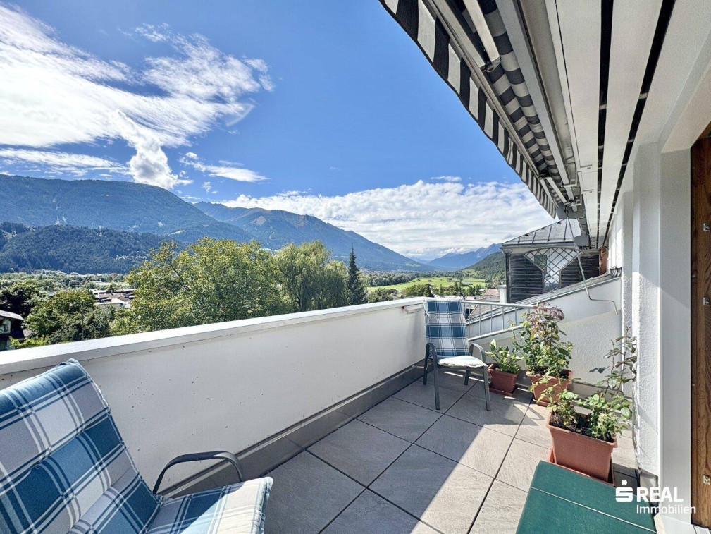 Hochwertige 3-Zimmer-Dachgeschosswohnung mit PanoramablickDiese großzügige Dachgeschosswohnung bietet auf 76,87 m² Wohnfläche helle Räume, eine durchdachte Grundrissgestaltung und hochwertige Materialien.Der Grundriss umfasst ein lichtdurchflutetes Wohnzimmer mit offener Küche und direktem Zugang zum sonnigen, süd-ost-westlich ausgerichteten Balkon. Zwei Schlafzimmer – teils mit Dachschrägen –, ein modernes Badezimmer, ein Abstellraum sowie ein einladender Eingangsbereich runden das Raumangebot ab. Ein Kellerabteil im Untergeschoss ist im Kaufpreis enthalten. Zusätzlich kann eine geflieste Doppelgarage mit Wasseranschluss zum Aufpreis von € 50.000,- dazuerworben werden. Ein riesiger Gemeinschaftsgarten bietet zusätzlichen Freiraum und Platz für entspannte Stunden mit Familie und Freunde.Die Wohnung wurde teilweise saniert: Bad, Küche, sämtliche Fenster, Böden, Türen, die Terrasse sowie die Möblierung. Die Ausstattung verbindet moderne und traditionelle Elemente. Hochwertige Fliesen, Parkett und Vollholz-Böden sorgen dabei für eine ansprechende Optik und ein angenehmes Wohnklima. Beheizt wird die Wohnung über eine zentralisierte Öl-Heizung sowie einen zusätzlich eingebauten Speckstein-Holzofen.Bei Interesse stehe ich Ihnen gerne zur Verfügung und sende Ihnen unverbindlich ein umfangreiches Exposé zu.Alexander Eisendle
