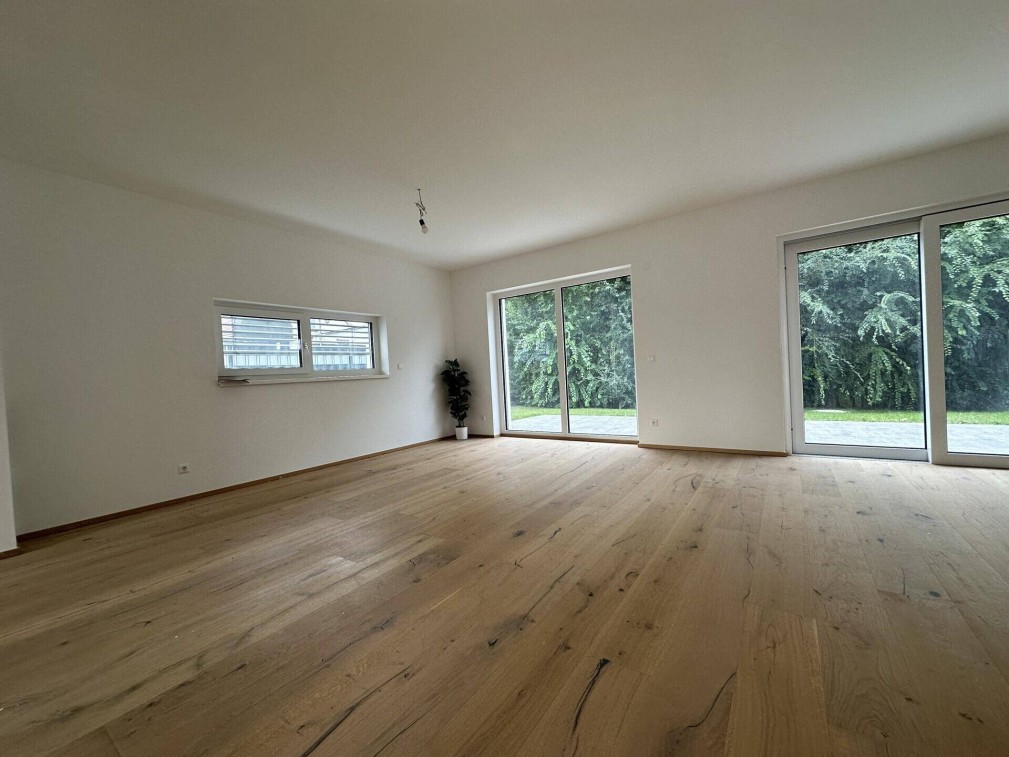 Ein heller Wohn- und Essbereich mit direktem Zugang zur Terrasse und in den Garten bildet das Herzstück des Hauses. Die offene Küche ist modern gestaltet und bietet viel Platz. Zusätzlich befinden sich im Erdgeschoss ein Badezimmer mit begehbarer Dusche und Toilette, ein Hauswirtschafts- und Technikraum mit Waschmaschinenanschluss, ein praktischer Abstellraum sowie ein Vorraum mit Zugang zu allen Bereichen. Für behagliche Wärme sorgt ein Kaminanschluss im Wohnzimmer. Die großzügige Terrasse lädt zu gemütlichen Stunden im Freien ein.