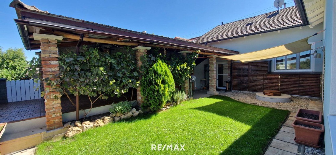 Das Objekt besticht durch eine sonnige Terrasse mit traumhaftem Blick auf den Bernhardsthaler Teich – den größten Teich des Weinviertels – sowie einen gepflegten kleinen Garten, der zum Entspannen und Genießen einlädt.