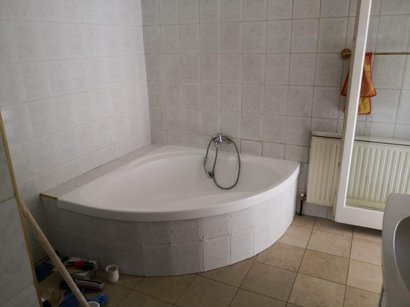 Vorzimmer, Wohnküche, 4 Wohnzimmer, 1 Bad mit Wanne und Waschmaschinenanschluss, verfließt und guter Zustand, extra WC. Loggia.