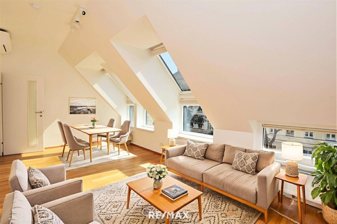 Diese stilvolle 3-Zimmer-Dachgeschosswohnung im 14. Bezirk Penzing vereint modernes Wohnen mit behaglichem Wohngefühl. Sie befindet sich im obersten Stockwerk eines Wohnhauses aus dem Jahr 2014 und ist bequem mit dem Lift erreichbar. Dank der optimalen Nord-Süd-Ausrichtung ist die Wohnung von Licht durchflutet und schafft zu jeder Tageszeit eine angenehme Atmosphäre. Eine Klimaanlage in allen Räumen sorgt auch im Sommer für ein stets angenehmes Wohnklima.