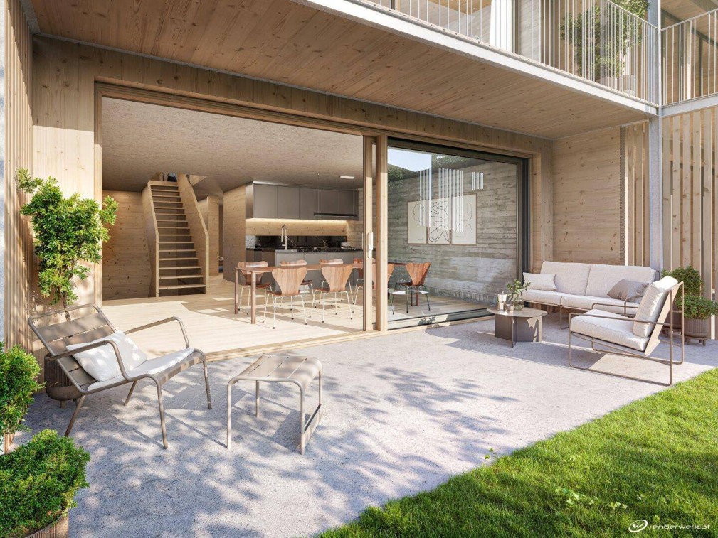 "Wohnen Am Park in Aldrans" sind vier Neubau-Villen in unverwechselbarer Architektur und exklusiver Lage - angrenzend an einen privaten Park mit Baumjuwel und unverbaubarem Blick übers Inntal für lange Sonnenstunden!Villa 2 - kann als Einfamilienhaus oder unterteilt in 2 separate Wohneinheiten genutzt werden.Im Untergeschoss (ebenerdiger Zugang) befindet sich neben dem Eingangsbereich ein großzügiger Garderobenbereich, die Garage (mit Platz für 2 PKW und Fahrräder), sowie ein Technik- und Hauswirtschaftsraum – mit Anschlussmöglichkeiten für Waschmaschine und Wäschetrockner.Wenn man die einläufige Treppe ins Erdgeschoß hinauf geht, hat man sofort den direkten Blickbezug zum Koch-/Essbereich, welcher in Richtung Süden, in die vorgelagerte, überdachte Terrasse, sowie den großzügigen Garten übergeht. Zwei ruhige Schlafzimmer mit nordwestlicher Ausrichtung, sowie ein Bad und ein Gäste-WC komplettieren diese Ebene.Im Obergeschoß befinden sich zwei weitere helle Schlafzimmer mit großzügigem Balkon Richtung Süd-Osten, ein angrenzendes, elegantes Badezimmer mit Badewanne, Dusche und WC. Phantastisch ist der 3,5m hohe Wohn-, Koch- und Essbereich mit herrlich großer Fensterfläche und Blick über Innsbruck und auf die Nordkette! Das Fenster-Element ist komplett aufklappbar, die überbreite Fensterbank mit Sitzgelegenheit garantiert gemütliche Weitblickstunden!Die Häuser verfügen über eine Garage sowie einen zusätzlichen, überdachten Stellplatz. Der private Gartenbereich liegt sonnenseitig, im Süden und bietet einen unverwechselbaren Schlossblick, sowie auf den Patscherkofel.Baustart ist Sommer 2025 erfolgt, geplante Fertigstellung Ende 2026. Je nach Zeitpunkt Ihrer Kaufentscheidung sind die Grundrisse noch flexibel!Konstruktion und MaterialDie Materialwahl folgt einem konsequent nachhaltigen Baukonzept. Im Mittelpunkt steht der Einsatz natürlicher, ökologischer Baustoffe - es handelt sich um ein Niedrigenergiehaus!In allen Wohnbereichen wird ein hochwertiger Eichenholzfußboden mit integrierter Fußbodenheizung verlegt. Ein durchdachtes Beleuchtungskonzept ist derzeit in Ausarbeitung und rundet die hochwertige Ausstattung ab.