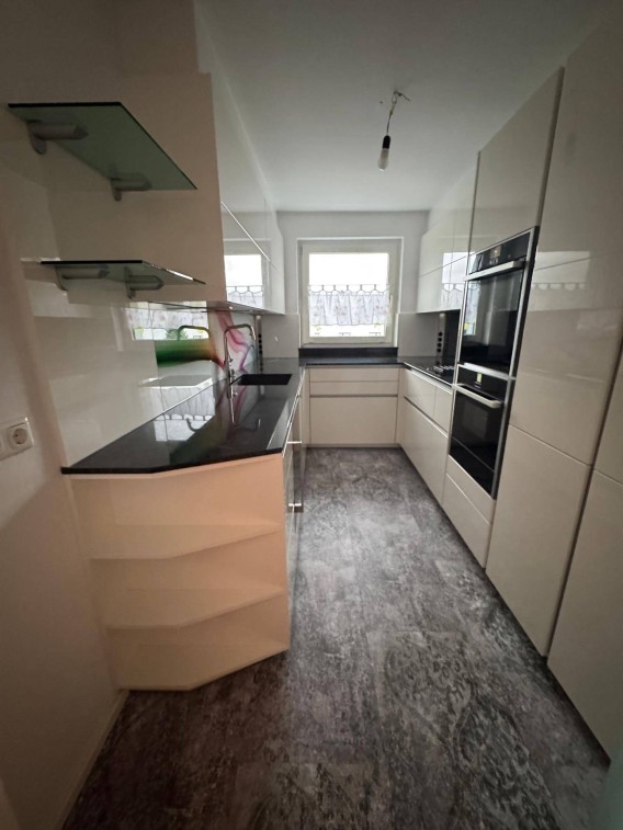 Die moderne Küche verfügt über hochwertige Elektrogeräte, ein Abstellraum mit Waschmaschine und Trockner rundet das Angebot ab.
