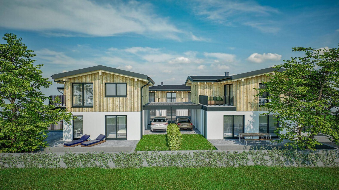 Haus 4 verfügt über eine Gesamtnutzfläche von ca. 150,26 m² und ist voll unterkellert. Zwei Stellplätze sind im Kaufpreis inbegriffen. Im Erdgeschoss lädt eine großzügige Terrasse mit angrenzendem Garten zum Verweilen ein, während im Obergeschoss ein Balkon den Blick auf die umliegende Bergwelt freigibt. Reine Wohnfläche EG+OG 97,84 m², Wohnnutzfläche inkl. UG 150,26 m². Balkon- und Terrassenflächen ca. 41,47 m².