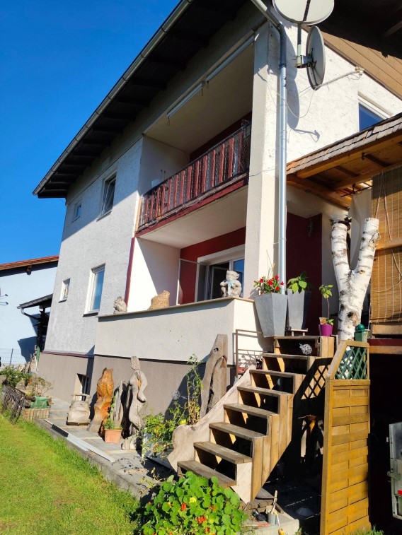 Ein großes Zweifamilienhaus mit zwei getrennten Wohnungen mit viel Platz im Garten sehr zentral gelegen und doch am Waldrand alles zu Fuß erreichbar Arzt Apotheke Einkaufsmöglichkeiten Schule Kindergarten die Lokalbahn man ist in einer halben Stunde in der Stadt sehr praktisch