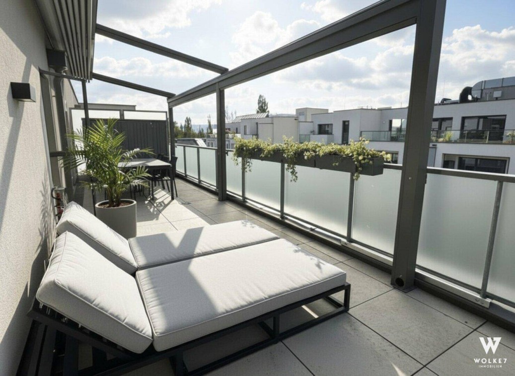 Exklusives Dachgeschoss mit Grünblick – knapp 100 m² Wohnfläche, 2 Terrassen mit neuen Pergolen & hauseigenem HallenbadZum Verkauf gelangt eine hochwertig ausgestattete 4-Zimmer-Dachgeschosswohnung mit rund ca. 99 m² Wohnfläche und zwei Terrassen (ca. 44 m²). Die Wohnung liegt im Dachgeschoss einer im Jahr 2021 fertiggestellten Wohnhausanlage und bietet neben modernem Design ein Wohngefühl der Extraklasse.Schon beim Betreten überzeugt die Wohnung durch ihr durchdachtes Raumkonzept und ihre hochwertige Ausstattung: Einladend gestaltet sich das Vorzimmer mit Tischler-Einbauten, das großzügige Wohnzimmer mit Klimaanlage und einer eleganten DAN-Küche mit Miele-Geräten bildet das Herzstück der Immobilie. Von hier aus öffnen sich eine der beiden sonnigen Freiflächen – beide wurden mit hochwertigen neuen Pergolen ausgestattet, die ganzjährig für ein angenehmes Outdoor-Erlebnis sorgen. Ob Frühstück in der Morgensonne oder Sundowner mit Bisambergblick – die Terrassen sind wahre Wohlfühloasen.Die drei Schlafzimmer, ebenfalls klimatisiert und mit direktem Terrassenzugang, schaffen viel Platz für Familie, Gäste oder Homeoffice. Das moderne Badezimmer mit Doppelwaschbecken, Badewanne und Dusche, ein separates WC mit Handwaschbecken sowie ein Abstellraum mit Waschmaschinen-Anschluss sorgen für Komfort im Alltag. Für ein angenehmes Raumklima sorgen Fußbodenheizung mit Einzelraumregelung, sowie elektrische Außenjalousien und Fliegenschutz an allen Fenstern und Terrassentüren.Besonders hervorzuheben sind die zahlreichen Annehmlichkeiten der Wohnhausanlage: Neben einem hauseigenen Hallenbad, einer Saunalandschaft, einem Weinkeller sowie einem Gemeinschaftsraum stehen auch Fahrrad- und Kinderwagenabstellräume sowie eine großzügige Grünfläche zur Verfügung. Die Wohnung ist selbstverständlich barrierefrei und wird durch eine Sicherheitstür sowie hochwertige Innentüren ergänzt.FAKTEN | HIGHLIGHTS | AUSSTATTUNGWohnfläche: ca. 99 m²2 Terrassen gesamt ca. 44 m² mit Blick auf den BisambergBeide Terrassen mit hochwertigen neuen Pergolen4 Zimmer mit durchdachtem GrundrissEigentums-Tiefgaragenplatz optional: € 26.000,-Baujahr: 2021, barrierefreiHochwertige DAN-Küche mit Miele-GerätenWohnzimmer & Schlafzimmer mit KlimaanlageBadezimmer mit 2 Fenstern, Doppelwaschbecken, Badewanne & DuscheSeparates WC mit HandwaschbeckenAbstellraum mit Waschmaschinen-AnschlussFußbodenheizung mit Einzelraumregelung | HauszentralheizungHochwertige Parkett- & FliesenbödenElektrische Außenjalousien & Insektenschutz an allen Fenstern/TürenHochwertige Innentüren & SicherheitstürEinlagerungsabteil & eigener WeinkellerHallenbad, Saunalandschaft, Gemeinschaftsraum, Fahrrad- & KinderwagenräumeMit den beiden großzügigen Terrassen samt neuen Pergolen, hochwertigster & exklusiver Ausstattung und den außergewöhnlichen Extras der Anlage ist diese Wohnung ein echtes Highlight am Markt, das Komfort, Design und Lebensqualität perfekt vereint.Nutzen Sie die Gelegenheit und informieren Sie sich über dieses attraktive Immobilienangebot.