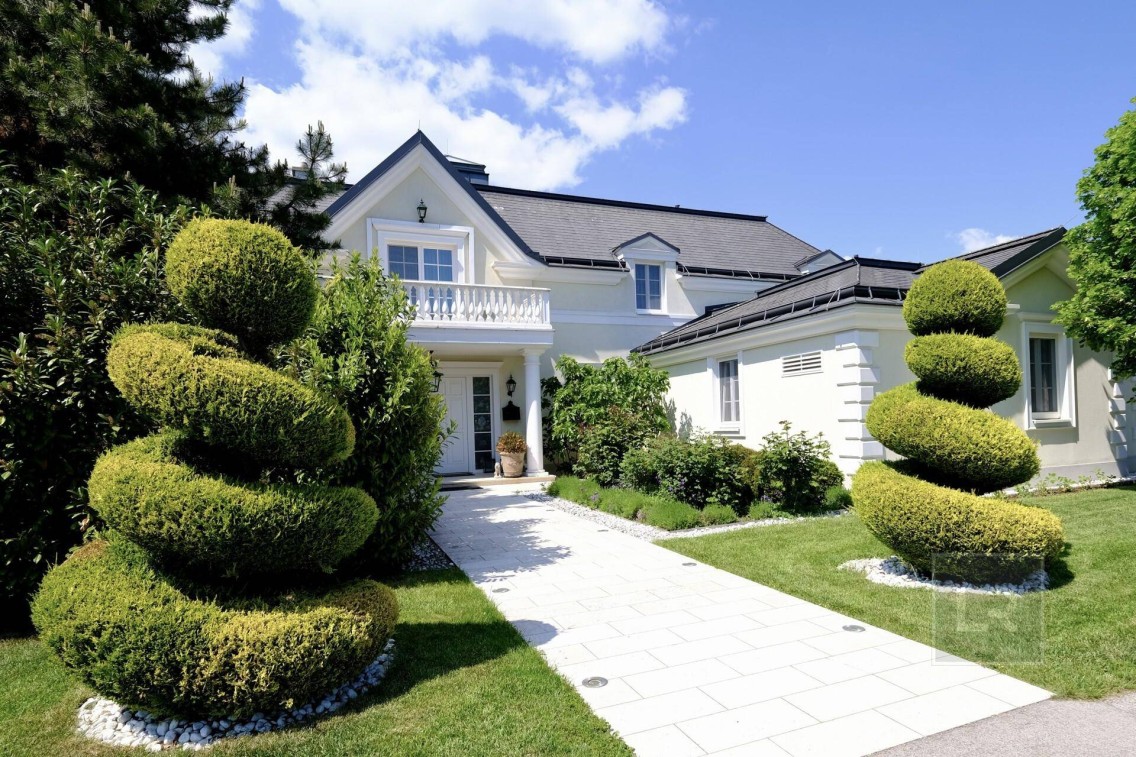 Die großzügige Liegenschaft mit parkähnlich angelegtem Gartenbereich sorgt auf Grund des herrlichen Baumbestands für viel Privatsphäre und Ruhe. Schön angelegte Travertinterrassen ummanteln die herrschaftliche Villa und bieten jederzeit angenehme Sonnen bzw. Schattenplätze.