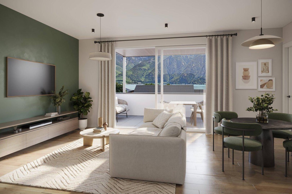 Entdecken Sie Ihr neues Zuhause in der malerischen Gemeinde Unterach am Attersee, einer der schönsten Ecken Oberösterreichs. Diese charmante Wohnung im Erstbezug befindet sich in der ersten Etage eines modernen Wohnhauses und bietet Ihnen auf 53,9 m² alles, was das Herz begehrt.Mit zwei hellen, freundlichen Zimmern bietet diese Wohnung ein komfortables Zuhause für Singles oder Paare. Der offene Wohnbereich überzeugt durch große Fenster, die für eine angenehme Lichtdurchflutung sorgen und eine freundliche Wohnatmosphäre schaffen. Auf dem sonnigen Südbalkon lässt sich der Tag entspannt ausklingen – ideal für eine kurze Auszeit im Freien oder ein gemeinsames Essen im Freien.Genießen Sie die Vorzüge eines durchdachten Grundrisses, der Ihnen sowohl Gemütlichkeit als auch Funktionalität bietet. Die Dielen verleihen der Wohnung eine warme und einladende Atmosphäre, während der Personenaufzug den Zugang zum ersten Stock komfortabel gestaltet.Für Ihr Fahrzeug steht ein fixer Stellplatz zur Verfügung, sodass Sie sich keine Sorgen um Parkplatzprobleme machen müssen. Zudem sorgt der außenliegende Sonnenschutz dafür, dass Sie auch an heißen Tagen angenehme Temperaturen in Ihrer Wohnung genießen können.Erleben Sie das Leben am Attersee in vollen Zügen! Ob Sie entspannende Spaziergänge am Ufer unternehmen, die herrliche Natur erkunden oder einfach nur die Ruhe genießen möchten – hier finden Sie den perfekten Ort dafür.Lassen Sie sich diese einmalige Gelegenheit nicht entgehen und vereinbaren Sie noch heute einen Besichtigungstermin. Ihre Traumwohnung wartet auf Sie!Für diese Wohnung ist die Anmeldung eines Hauptwohnsitzes erforderlich.