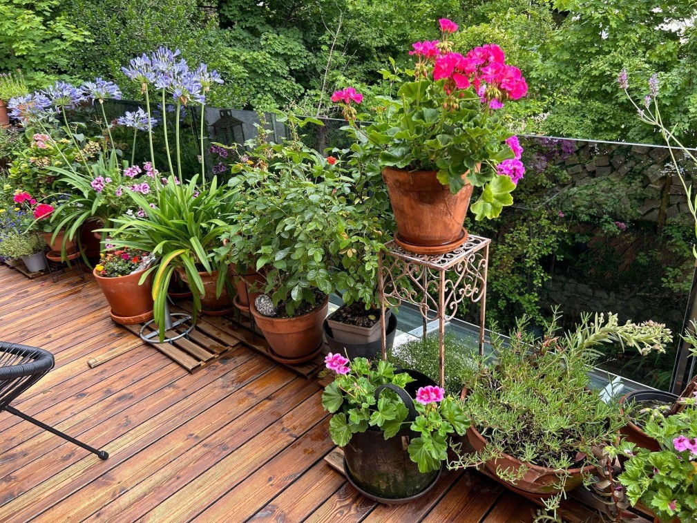 Die Wohnung wurde von uns sehr sorgfältig und mit hochwertigen Materialien renoviert: im Wohnzimmer steht ein gemütlicher gemauerter Holzofen. Französische Fenster in der Loggia öffnen den Blick ins Grüne. Ein herrlicher Balkon ergänzt das derzeitige Esszimmer mit Licht und Freizügigkeit, die Nachbargebäude liegen auf dieser Seite weit weg.