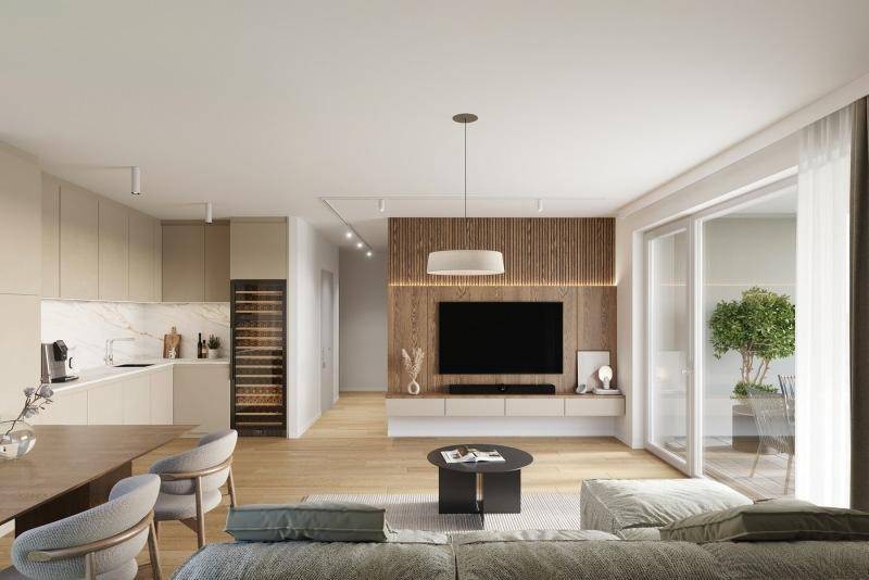 Apropos Komfort: die 34 Eigentumswohnungen mit 2 bis 4 Zimmern und Größen von rd. 45 bis 96 m² sind in modernen Standards ausgestattet, überzeugen durch durchdachte Raumplanung sowie großzügige private Freiflächen. Sowohl Singles, Paare als auch Familien finden genau das Zuhause, das zur jeweiligen Lebenssituation passt.