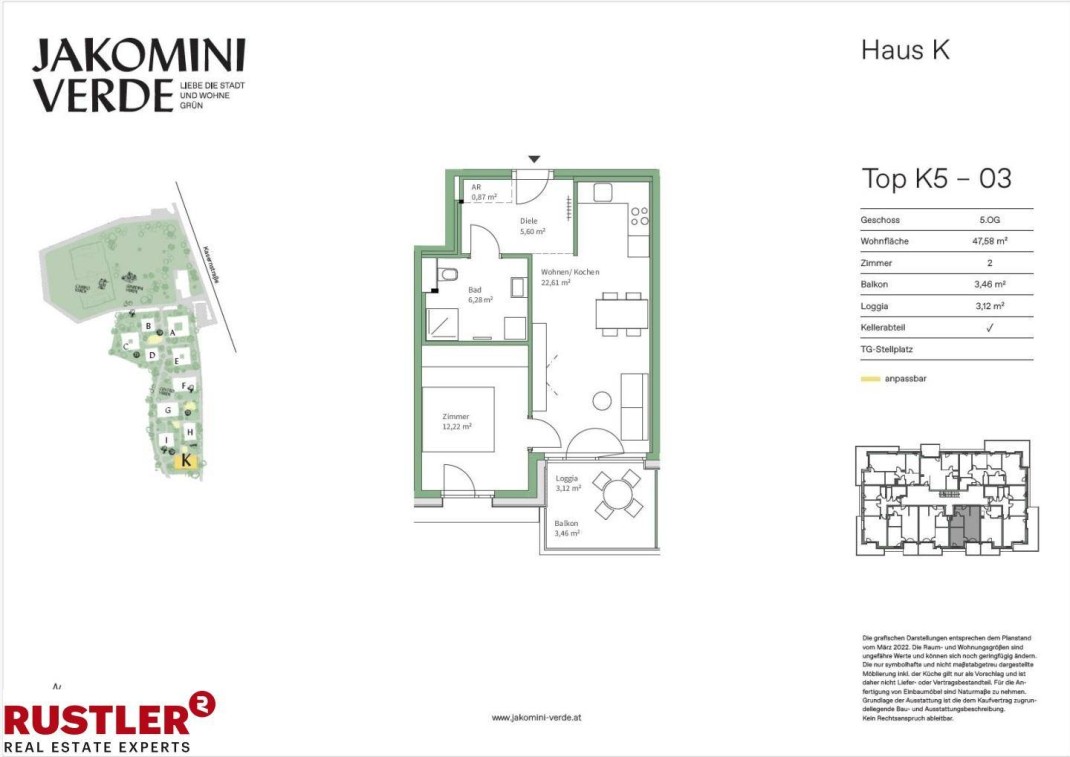 Die Top K5-03 ist ca. 47,58 m² groß, befindet sich im 5. Stock und hat folgende Räumlichkeiten: