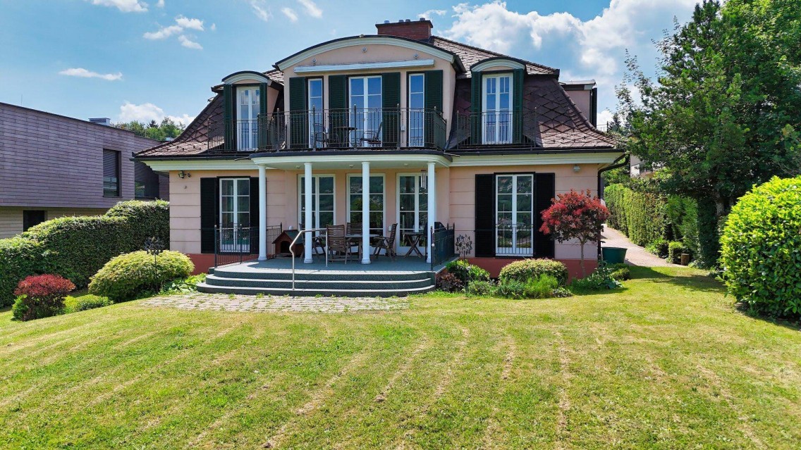 Luxuriöse Villa in Velden am WörtherseeIn Velden am Wörthersee erwartet Sie diese elegante und großzügige Familienvilla, die mit hochwertigen Ausstattungselementen, großzügigem Platzangebot und einer traumhaften Gartenoase begeistert.Exklusive Lage mit PanoramablickDie Villa thront in herrlich ruhiger Lage, umgeben von gepflegten Einfamilienhäusern und Villen in privilegierter Nachbarschaft. Genießen Sie den weiten und unverbaubaren Blick über den Wörthersee und die Westbucht mit Schlosshotel, Casino und Seepromenade. Die Naherholungsgebiete in unmittelbarer Umgebung versprechen Ihnen eine genussvolle Auszeit vom Alltag. Die Landeshauptstadt Klagenfurt sowie Villach erreichen Sie in jeweils ca. 20 Autominuten.Elegante InnenausstattungBereits im Entrée mit großzügigem Treppenhaus empfängt Sie die Wohlfühlatmosphäre, die sich in allen Räumen dieses liebevoll gestalteten Domizils fortsetzt. Der Wohnsalon mit offenem Kamin lädt zu entspannten Stunden am knisternden Feuer ein. Der großzügige und offen gehaltene repräsentative Wohn-/Essbereich bietet viel Platz für Sie und Ihre Gäste. Die mit Markengeräten ausgestattete Küche mit separater Speisekammer lässt keine Wünsche offen. Ein Arbeitszimmer mit separatem Badezimmer bietet Platz für ungestörtes Arbeiten. Insgesamt finden sich im Objekt sechs Badezimmer und ein Gäste-WC.Im Untergeschoss befinden sich zwei große Schlafzimmer, jeweils mit separatem Badezimmer und Küchenbereich. Im Obergeschoss stehen zwei geräumige Schlafzimmer, ebenfalls jeweils mit eigenem Bad mit Dusche, zur Verfügung. Ein Highlight ist das große Schlafzimmer mit Balkon, angeschlossenem Ankleidezimmer und einem großzügigen Marmorbadezimmer mit Doppelwaschtisch, Dusche und Badewanne. Ein originelles Detail ist die eiserne Wendeltreppe, die in den darunterliegenden Wohnsalon führt.Außenbereich mit PrivatsphäreIm Außenbereich finden Sie eine separate Doppelgarage sowie weitere Stellplätze auf dem gepflasterten Innenhof. Auf der überdachten Terrasse und im sonnenverwöhnten Garten erleben Sie absolute Privatsphäre und Urlaubsfeeling zuhause.Ein ausführliches Exposé lassen wir Ihnen gerne zukommen und ersuchen höflichst um Übermittlung Ihrer vollständigen Kontaktangaben.Der Vermittler ist als Doppelmakler tätig.