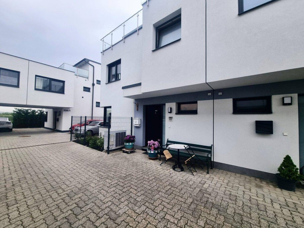 Wohnen & Entspannen auf höchstem Niveau – nur wenige Minuten von Wien entferntDiese stilvolle Immobilie vereint modernes Wohnambiente mit einer ruhigen, naturnahen Umgebung – der perfekte Rückzugsort für Paare oder Familien, die Wert auf Qualität, Komfort und Lebensqualität legen.Großzügige Glasfronten durchfluten die Wohnräume mit Tageslicht und schaffen eine freundliche, offene Atmosphäre. Die hochwertige Ausstattung, darunter eine energieeffiziente Luftwärmepumpe und Fußbodenheizung auf allen Etagen, garantiert ein angenehmes Wohngefühl zu jeder Jahreszeit. Zwei private PKW-Stellplätze runden das Angebot ab – kein mühsames Parkplatzsuchen mehr.Durchdachte Raumaufteilung auf drei EbenenErdgeschossGroßzügiger Eingangsbereich mit separatem Gäste-WC