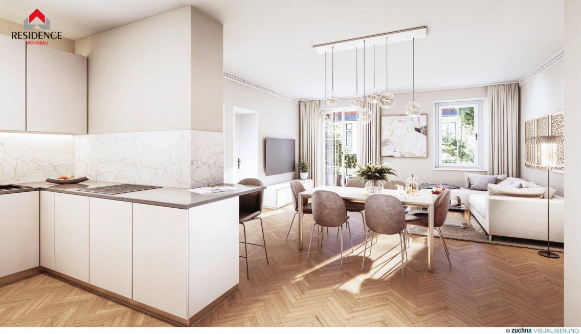 Das von dem renommierten österreichischen Architekten Jakob Ceconi entworfene Stadthaus wird mit viel Sorgfalt generalsaniert, um höchsten Ansprüchen an modernes Wohnen gerecht zu werden – ohne dabei seinen einzigartigen Altbau- Charme zu verlieren. Balkone und Terrassen werden ergänzt, sodass jede Wohnung von einer attraktiven Außenfläche profitiert. Auch ein Aufzug wird eingebaut, der vom Kellergeschoss bis ins Dachgeschoss führt.WohnraumDiese 3-Zimmerwohnung liegt 1. Obergeschoss. Die ca. 83 m2 Wohnfläche sind wohldurchdacht angelegt und haben mit zwei Schlafzimmern, Bad, WC, Vorraum, Garderobe sowie dem ca. 37 m2 großen Wohn/Ess/Kochbereich alles im Programm, was gutes Wohnen ausmacht. Große Fenster sorgen für eine natürliche und angenehme Wohnatmosphäre. Und wer eine Auszeit unter freiem Himmel genießen möchte, kann sich auf dem nach Süden ausgerichteten Balkon entspannt zurücklehnen. Zum Wohnpaket gehören auch Kellerabteil und Freistellplatz. Die Kosten pro Stellplatz betragen € 20.000,-. Dieses innovative Wohnkonzept überzeugt auf ganzer Linie mit perfekter Raumaufteilung und hohem Wohnkomfort.AusstattungBei den Projekten von RESIDENCE Wohnbau setzt man auf Hochwertigkeit und Langlebigkeit. Diese Philosophie ist schon beim ersten Schritt in den Wohnraum spürbar, wenn man den edlen Landhausdiele-Parkettboden aus Eiche betritt. In den zeitlos schönen Sanitärräumen sind großformatige Fliesen aus Feinsteinzeug verlegt. Die Bäderausstattung ist geprägt von Qualitätsmarken und modernem Design. Dreifach verglaste Kunststoff/Alu-Isolierfenster garantieren beste Wärmeisolierung und herrliche Ruhe. Die Räume sind angenehm hell durch zahlreiche Fenster im Inneren. Durch den Fernwärmeanschluss ist ein effizientes Heizen und ein optimales Raumklima ein Kinderspiel.LageDie zentrale Lage ist ideal: Nur zwei Straßen weiter lädt der Geh- und Radweg entlang der Salzach zu ausgiebigen Spaziergängen ein. Der Hauptbahnhof, Obus-Haltestellen, der Mirabellgarten sowie zahlreiche Cafés, Restaurants und zwei Einkaufszentren sind in wenigen Minuten erreichbar.