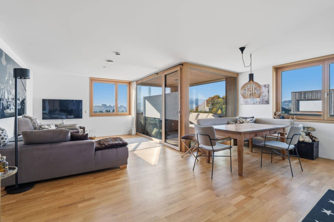 Der großzügige Wohnbereich ist mit hochwertigem Fertigparkett ausgestattet und sorgt zusammen mit der Fußbodenheizung für ein angenehmes Wohlfühlklima. Die offene Einbauküche integriert sich perfekt in den Raum und lädt zum gemeinsamen Kochen und Beisammensein ein.