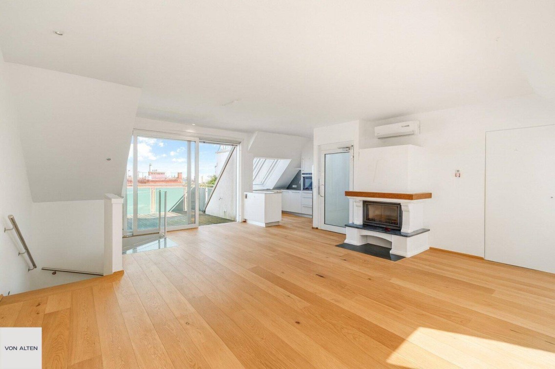 360°-Panoramablick: Energieeffiziente, barrierefreie DG-Maisonette mit privatem Lift, zwei Terrassen und Kamin