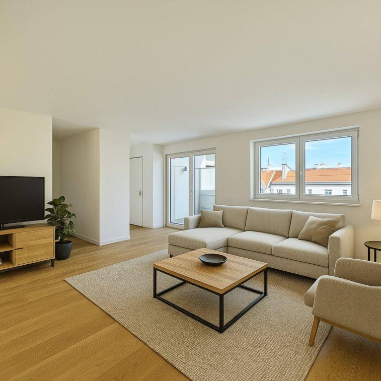 Alles auf einen Blick:Dachausbau 2025ErstbezugKurz vor FertigstellungSchlüsselfertige Übergabe5.Liftstock3 ZimmerCa. 90m² gew. NFLCa. 36m² TerrasseLuftwärmepumpeFußbodenheizungKLIMA-AnlageAlle Geschäfte des täglichen Bedarfs fußläufig erreichbarSehr gute Verkehrsanbindung durch die Nähe zum HauptbahnhofAuf ca. 90m² gewichteter Nutzfläche entfaltet sich ein durchdachter Grundriss, der sowohl Funktionalität als auch Gemütlichkeit vereint. Der Erstbezug garantiert Ihnen eine frische, neu gestaltete Umgebung, die nur darauf wartet, von Ihnen persönlich gestaltet zu werden. Der beeindruckende Stadtblick lässt Sie die pulsierende Energie Wiens direkt von Ihrem eigenen Wohnzimmer aus erleben. Die Wohnung ist mit hochwertigen Materialien ausgestattet, darunter stilvolle Fliesen und warmes Parkett, die für ein angenehmes Wohnklima sorgen. Die Fußbodenheizung sorgt für wohlige Wärme, während die Klimaanlage auch an heißen Sommertagen für erfrischende Kühle sorgt. Eine moderne Dusche rundet das Badezimmer ab und verleiht der Wohnung einen zeitgemäßen Touch. Klarstellend wird festgehalten, dass die endgültige Ausführung von der Visualisierung abweichen kann und aus der Visualisierung keine Rechtsansprüche abgeleitet werden können.