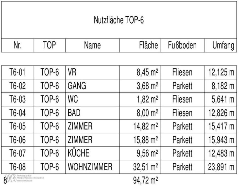Zum Verkauf kommt ein 3 Zimmer Erstbezug mit 2 Balkonen+ 3 Zimmer, 94m² Nutzfläche + PP vom Top-Bauträger in Ruhelage+ Wohnküche ~32m² Zimmer mit 16m² & 15m², Badezimmer 8m², Vorraum 8m², WC+ belagsfertig oder gegen Aufpreis von 28,4k schlüsselfertig+ Gebaut wird nach hohem energetischen Standard und Bauträgervertrag, ein bestehendes Vergleichsobjekt des Bauträgers kann in der Nähe besichtigt werden+ Top 6, Obergeschoß - Auszüge aus der Baubeschreibung:..Einrichtung von Abstellräumen, eines Kinderwagenabstellraums und einer von Aussen erreichbarer zweiläufiger Treppe Mit Zwischenpodest. Ein zentraler Gang führt zu vier Weiteren Wohneinheiten. Jede Wohnung erhält einen oder mehrere Balkone ... Dach: Neubau eines Flachdachs. Bestehendes Kellergeschoss: Zugang über eine bestehende Aussentreppe. Unterbringung der Heizungs- und Warmwassertechnik. Nebenanlagen: Im Erdgeschoss Müllsammelplatz....Damit Entsteht Ein Modernes, Auf Zwei Ebenen Organisiertes Mehrfamilienhaus, das Sowohl funktionale Grundrisse als auch grosszügige Aussen- Und Gemeinschaftsflächen bietet.