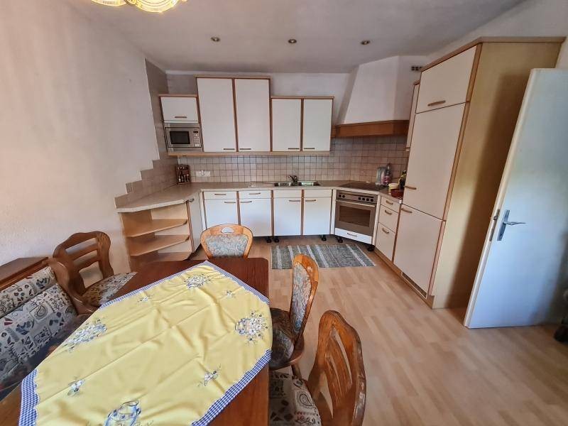 Das Erdgeschoß verfügt über eine Küche mit Essbereich, einem Zimmer, dem Badezimmer, einem Abstellraum und dem WC. Das Obergeschoß ist über eine Außentreppe erreichbar und beinhaltet zwei weitere Zimmer und einen Abstellraum. Über eine Holztreppe gelangt man in das Dachgeschoß welches mit Altholzpfosten in Lärche bestückt ist.