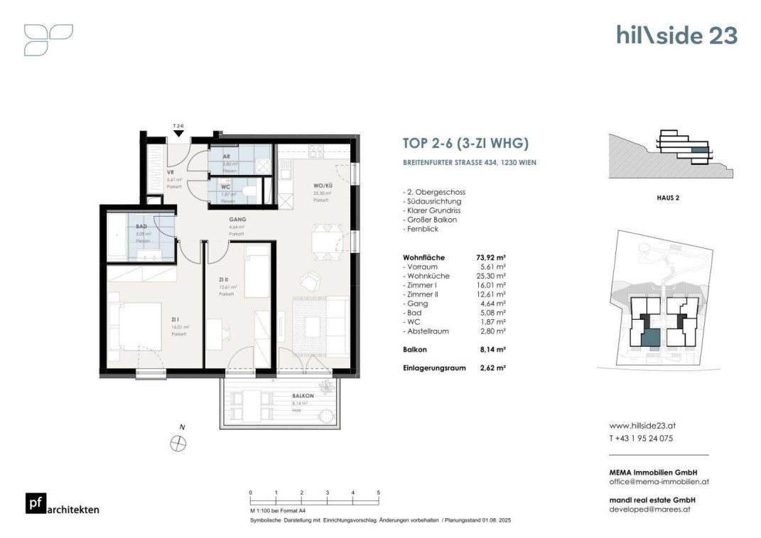 Bus: 253, 259 – Wien Rodaunbrücke (Breitenfurter Straße) (4 Gehminuten)Die 73,92 m²-Wohnfläche bietet wie folgt: